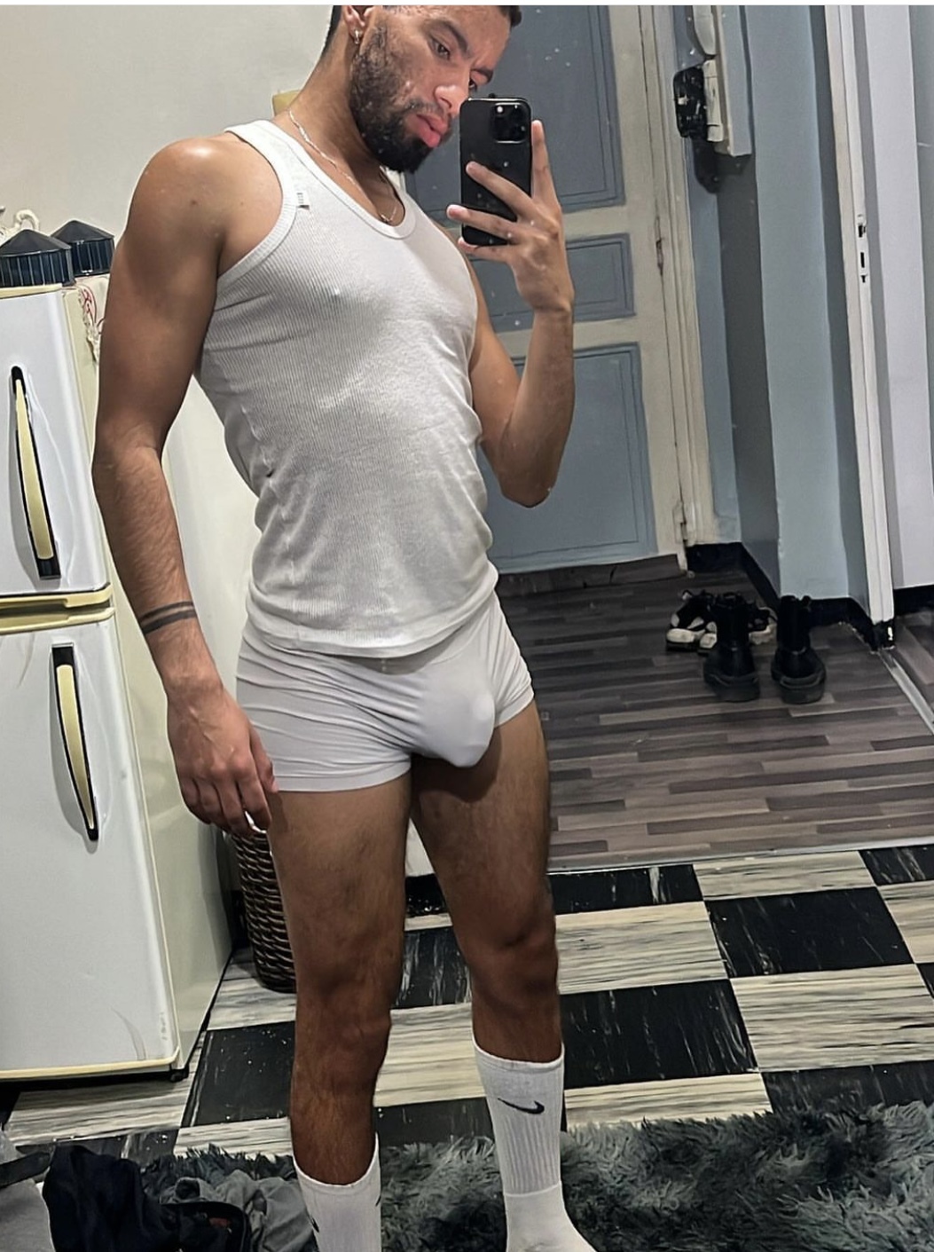 Karim s’exprime audacieusement à travers des selfies en slip. Arme en main, un sexe épais et intimidant, il souligne avec fierté sa masculinité algérienne.
