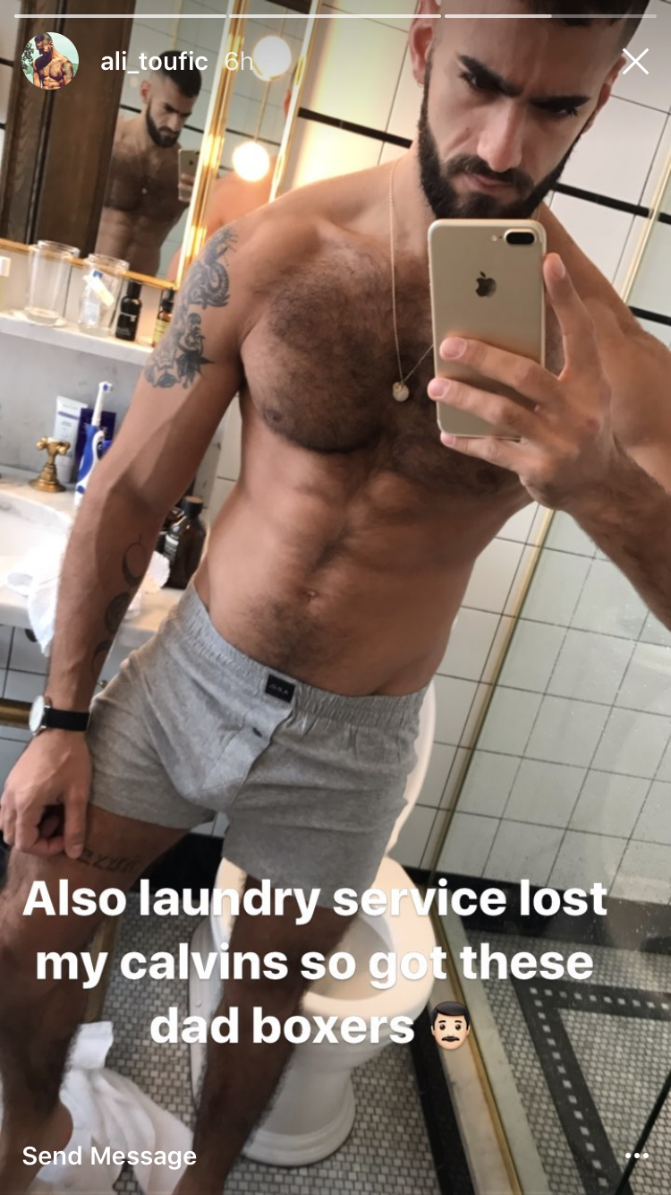 Ali Toufik est Libanais et installé depuis 15 ans aux Etats Unis où il est modèle et également gogo dancer dans des clubs gays. Ce beau mâle arabe au charme viril a 32 ans aujourd’hui (né en 1990).