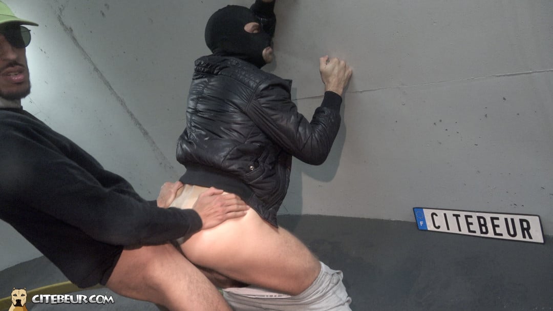 Caillera XXL mène le jeu et règle le tempo. Rythme sec, main ferme, souffle grave ; il garde le contrôle en toutes circonstances. Le soumis encaisse sans broncher, appliqué, concentré, il suit les ordres et fait le taf. L’air devient lourd et moite, les carrosseries renvoient des éclats de néon, on n’entend plus que leurs respirations et quelques mots murmurés pour chauffer l’ambiance.