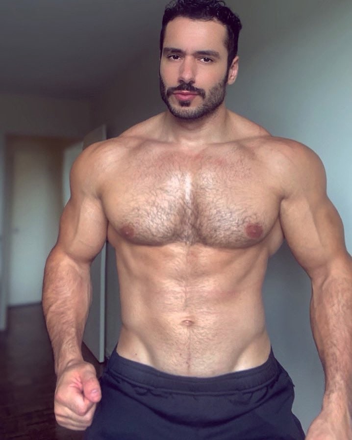 Voici Mostafa Akraa, un bodybuilder Turc aujourd’hui installé au Canada. Ce beau mâle baraqué est hétéro mais puisqu’il a ouvert un compte OnlyFans qui a eu pas mal de succès, il accepté de se filmer éjaculer.