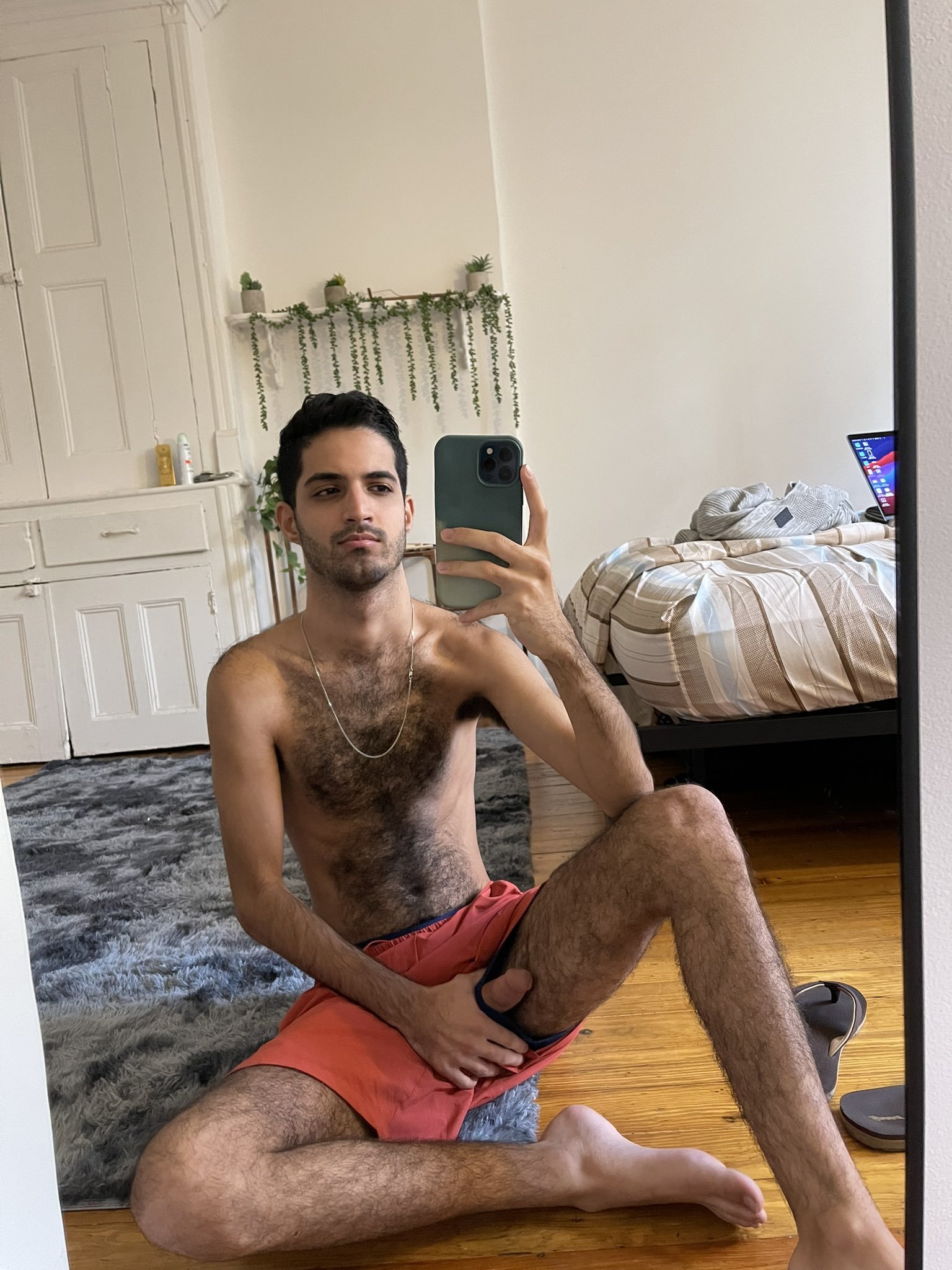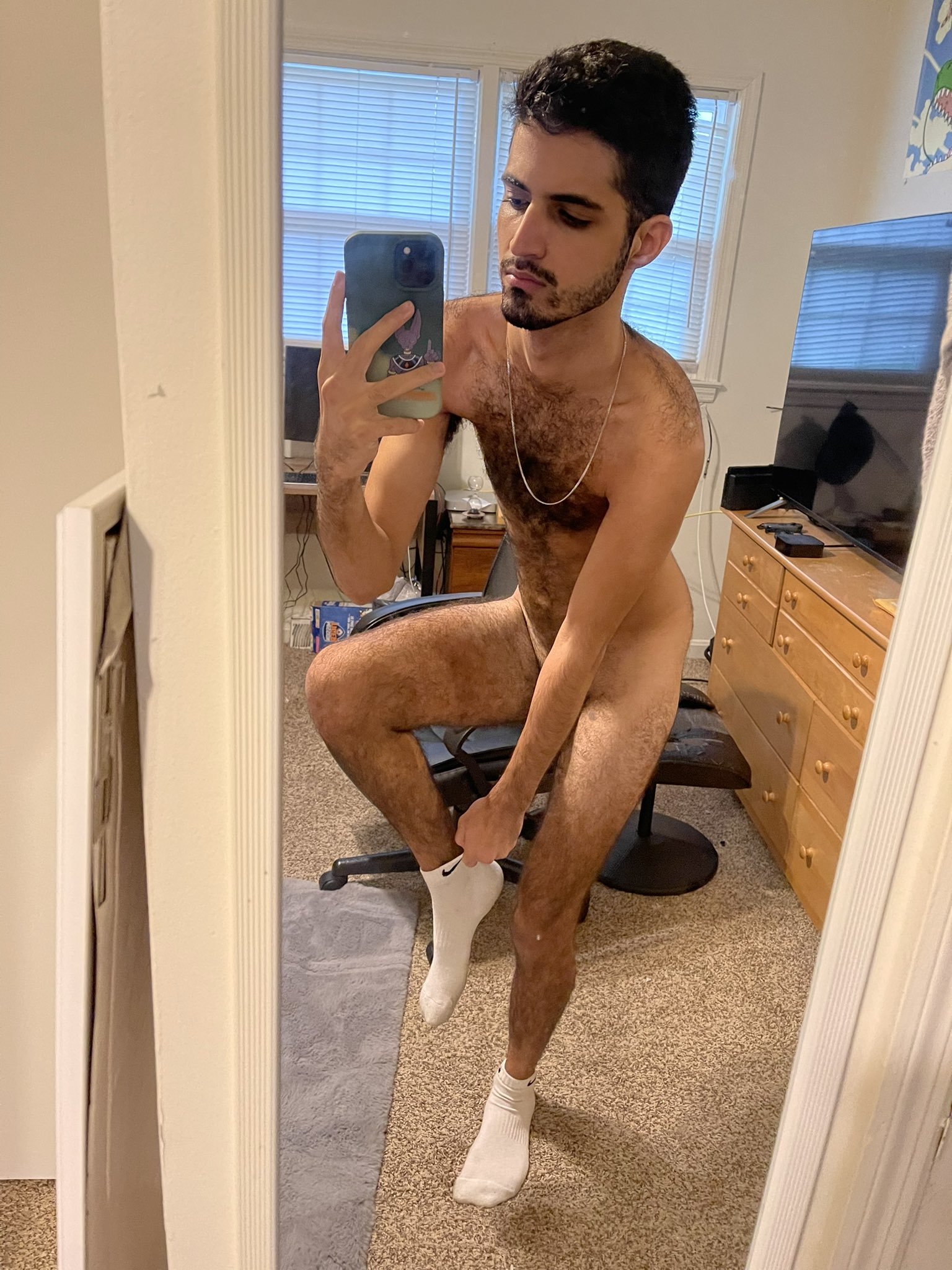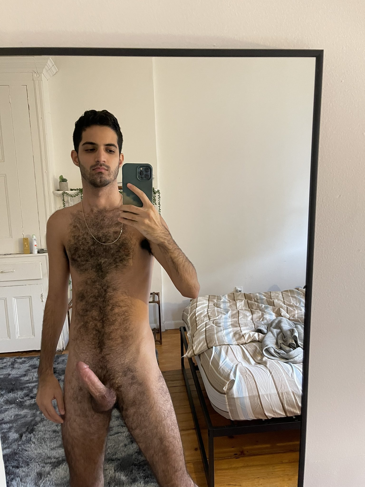 Nizar, du haut de ses 23 ans, est d’une stature élancée, svelte, ses muscles délicatement définis se dessinent sous sa peau hâlée. Son corps, bien qu’étonnamment fin, est le parfait contraste avec la rude texture de ses poils sombres qui ornent sa poitrine, son ventre et d’autres régions plus intimes. Ces mêmes poils qui, ajoutent une dimension exotique et sauvage à son charme oriental.